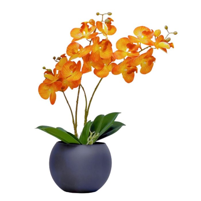 Arranjo No Vaso Preto Flores 2 Orquídeas Permanente Coral Coral