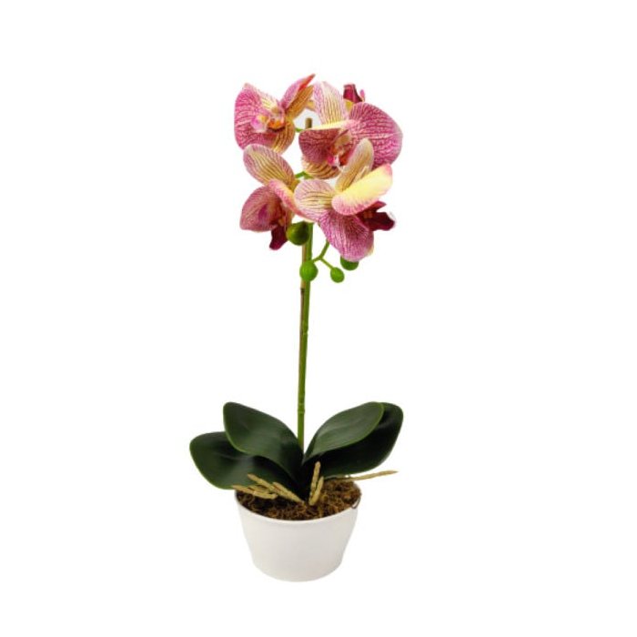 Arranjo Orquidea Planta Artificial Permanente 41x19cm Vaso