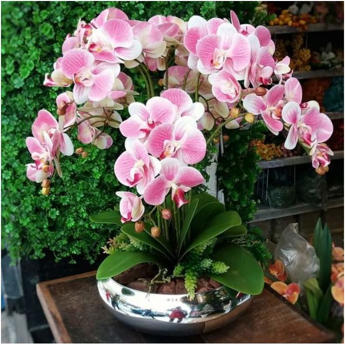 Arranjo Orquídeas De Silicone 10 Unidades Para Mesa Com Vaso
