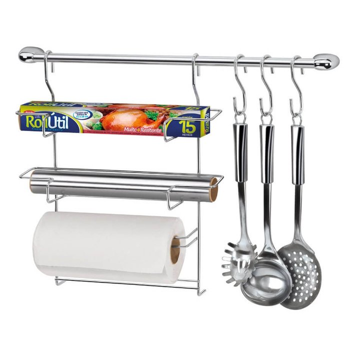 | Itens Inclusos | 1 barra de 49 cm 3 ganchos 1 porta rolos 1 kit para pendurar com buchas e parafusos |