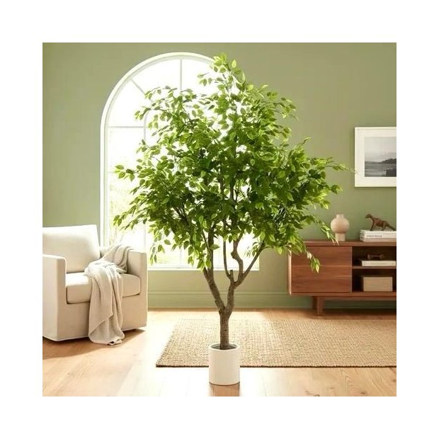 A Árvore Ficus artificial, possui folhas com material em silicone e plástico de excelente qualidade deixando-as com aparência muito natural, as hastes possuem arame as tornando flexíveis para ajustar as folhas da forma que preferir.