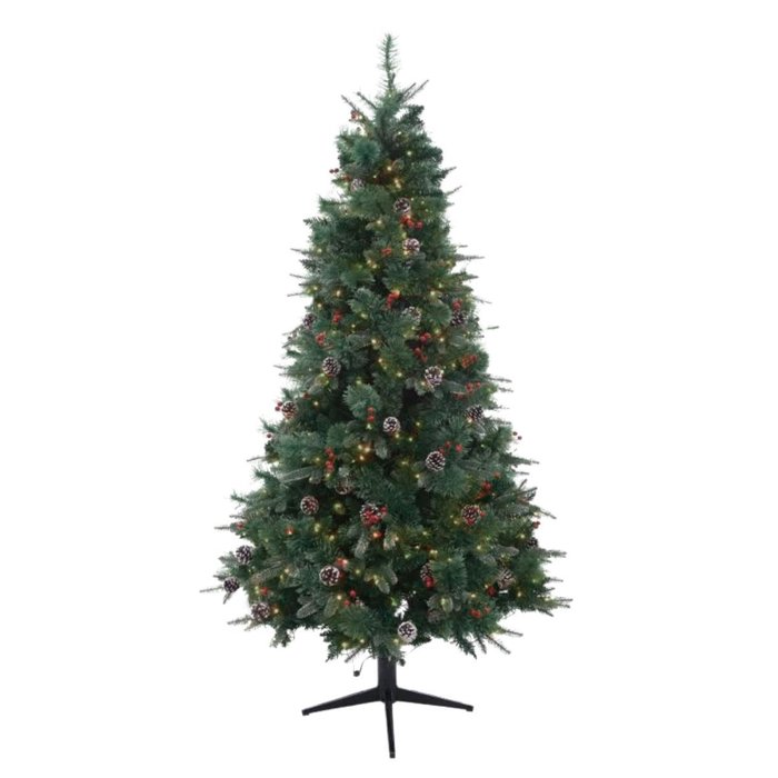 Descrição Árvore de Natal com Berry e Pinha 400 LEDs com Base Giratória 2,1m Florarte