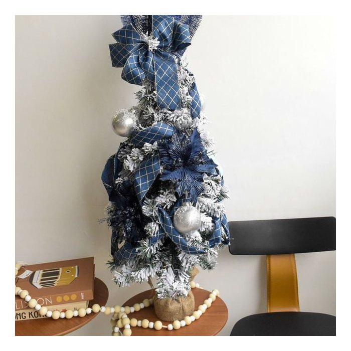 Árvore de Natal 90cm Nevada com Decoração Azul e Prateada com 90cm de Altura | Formosinha.