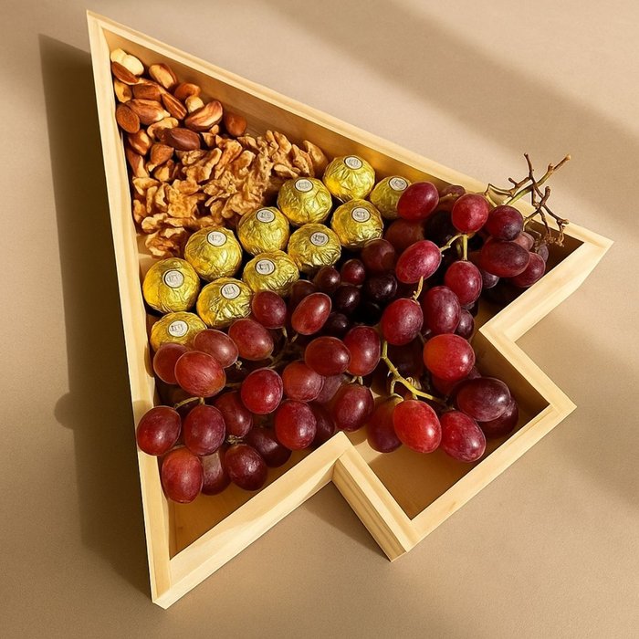 Encante seus convidados nesta temporada festiva com a nossa deslumbrante bandeja em formato de árvore de Natal, esculpida cuidadosamente em madeira de pinus sustentável. Esta peça única combina funcionalidade prática com um toque encantador de celebração, adicionando um toque especial à sua decoração de Natal.