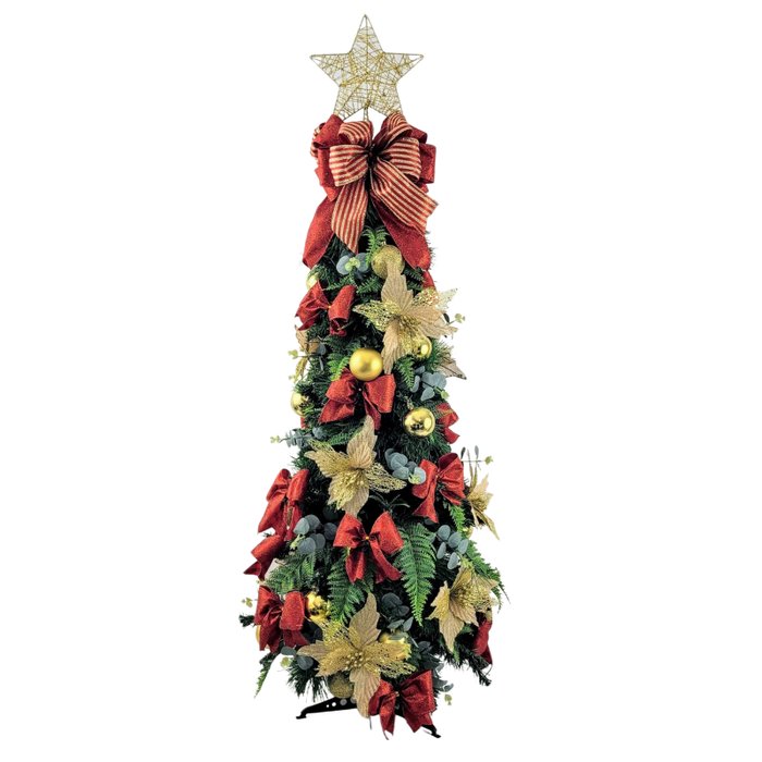 Árvore De Natal Vermelha Com Led 130x45cm Decorada Exclusivo