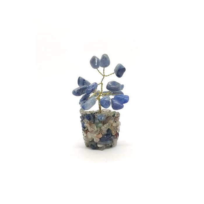 Árvore de Pedra Quartzo Azul Base Mix de Cristais 9cm