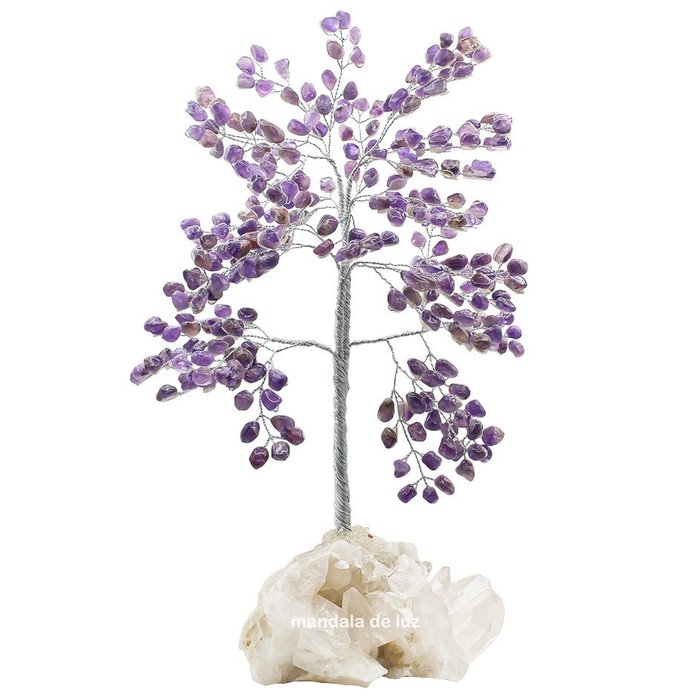 Árvore Grande de Pedras Naturais Cristais Ametista e Quartzo Transparente 30cm