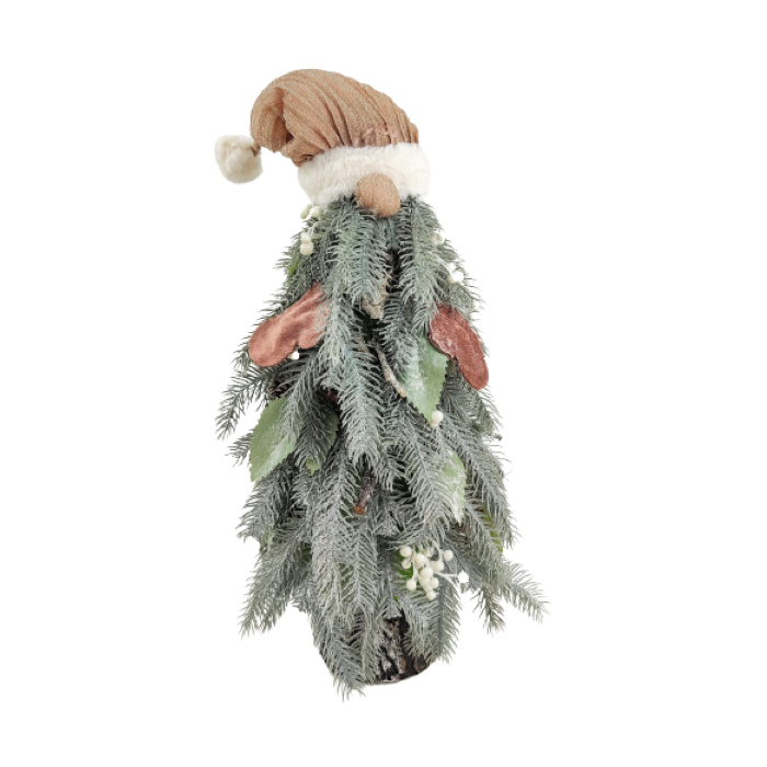 Árvore Pinheiro De Natal 56x25x25cm Com Gorro Noel Rosa