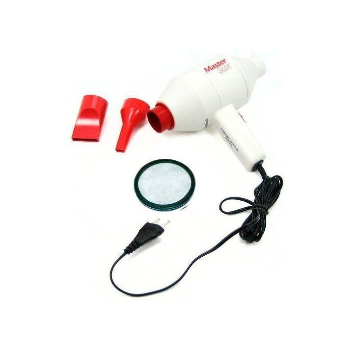 Aspirador de pó e jateador de ar Master Sux com tensão de alimentação de 220 V. - MasterSux é perfeito para limpar computadores, teclados, impressoras, carros, sofás, gavetas, móveis e todo e qualquer cantinho ou frestinha onde a sujeira costuma se esconder. Função: - Aspira tudo, até mesmo prego e parafusos. - É o único aspirador/jateador de ar com potência e bicos especialmente desenvolvidos para informática. - Proporciona rapidez e eficiência na manutenção preventiva de computadores, teclados, impressoras e facsímiles. - Também pode ser usado na limpeza e secagem de peças e equipamentos (função jateamento), limpeza de bancadas e pisos, inclusive na remoção de pó, cavacos, limalhas, etc. - Jateia eliminando as sujeiras mais difíceis a uma velocidade de fluxo de ar de até 80 Km/h. Energia: - Tensão de alimentação: 220V - Consumo de corrente máxima: 1 A - Potência nominal: 100W