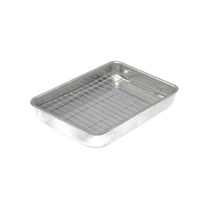 Assadeira retangular Nº 4 com borda alta em alumínio polido com grelha, assadeira inteligente 2 em 1, ideal para grelhar qualquer tipo de alimento e retirando a grelha pode ser usada como forma para assar bolo e outras receitas, muito mais praticidade para o seu dia a dia. Dimensões: Comprimento 39,0 cm. Largura 27,0 cm. Profundidade 6,5 cm. Assa e doura por inteiro; Deixa o alimento sem gordura; Fácil de limpar