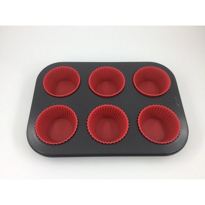 Acompanha 6 (seis) forminhas de silicone de 7cm de diametro por 3cm de altura, tamanho ideal para muffins, cupcake e bolinhos em geral.