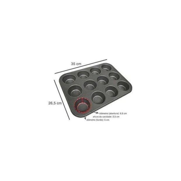 Assadeira Forma Antiaderente Cupcake Bolinho 12 Cavidades