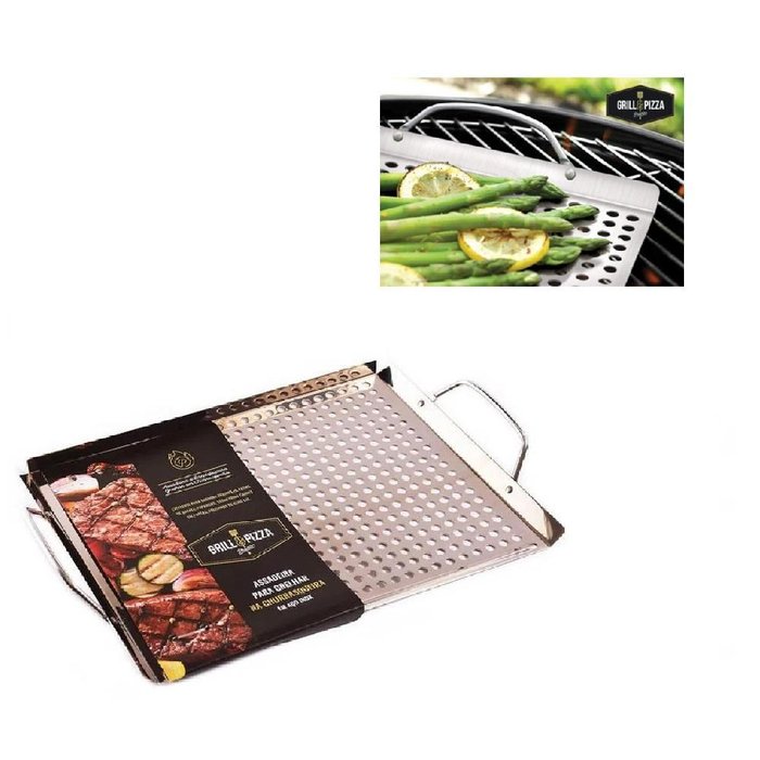 Assadeira para Grelha Churrasqueira Defumar Carne Legumes Pao de Alho Queijo Bandeja em Aco Inox