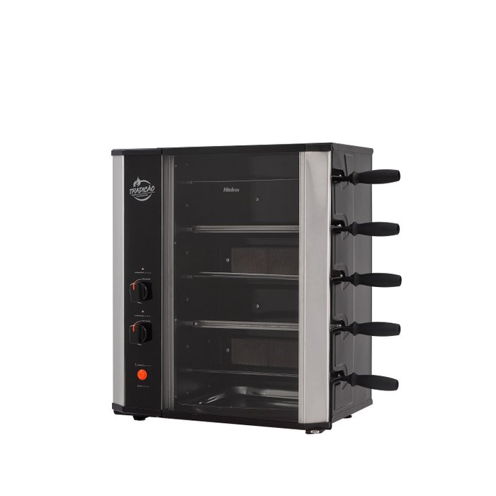 ASSADOR A GÁS TRADIÇÃO ACENDIMENTO AUTOMÁTICO M 1/30. Beneficios: Maior durabilidade; Maior praticidade para a higienização e maior durabilidade; O único com painel em vidro temperado que facilita a igienização e garante maior durabilidade; Suporta temperatura até 550 graus não propagando chamas; Dissipa melhor o calor evitando a concentração de altas temperaturas no cabo do espeto que pode ocasionar queimaduras; Maior resistência,durabilidade e fácil higienização