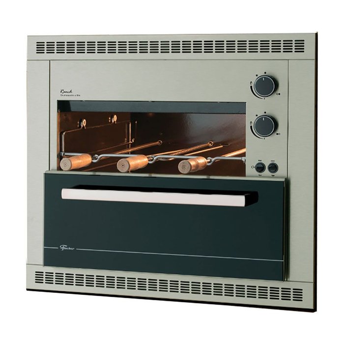 Assador Gás GLP de Embutir Rotativo Fischer Ranch 03 Espetos Bivolt 19255Com design elegante e moderno, esse assador se torna versátil por poder ser instalado em bancada ou embutido. Os amantes do churrasco ficaram muito mais felizes com esse modelo que proporciona comodidade e eficiência em um único produto. Sem fazer fumaça, é indicada para locais com pouco espaço ou sem saídas de ventilação.Sua alta potência traz ainda mais força aos seus 2 queimadores, assando o alimento de maneira muito mais veloz. Com 3 espetos rotativos que proporcionam um assado uniforme é capaz de atender sua famílias e amigos da melhor maneira possível. O interior desse assador conta com acabamento esmaltado em easy clean que garante uma limpeza muito mais fácil. Ele ainda conta com iluminação interna e controlador de gás que permite uma regulagem mais prrecisa da potência dos queimadores infravermelhos. Especificações Técnicas:- Marca: Fischer