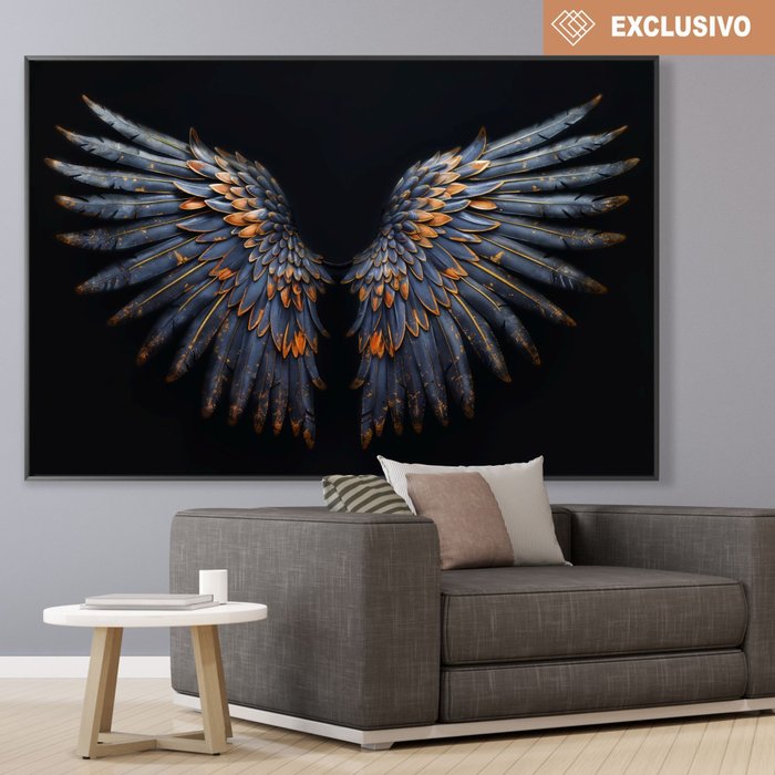 Assas Abstratas Azul Marinho Laranja Sala Quarto Casa Escritório Moldura Preta