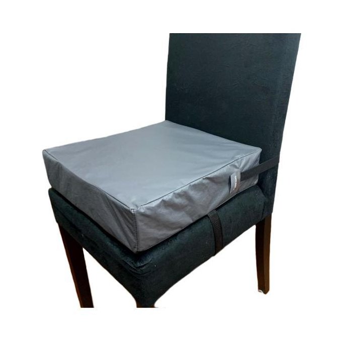 - a almofada de elevação fixa firmemente na cadeira e é mantido no lugar por duas tiras.