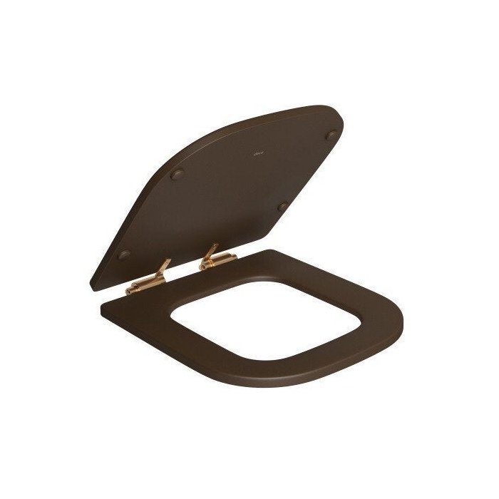 Assento Poliéster Marrom Fosco Slow Close AP337 Piano com Fixação na cor Gold Matte (Dourado Fosco) Deca.
