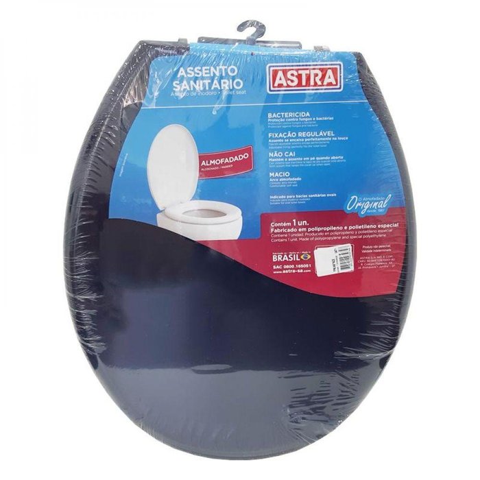 Assento Sanitário Almofadado Astra Convencional Oval Universal Azul Marinho, marca Astra, almofadado macio com proteção contra fungos e bactérias.