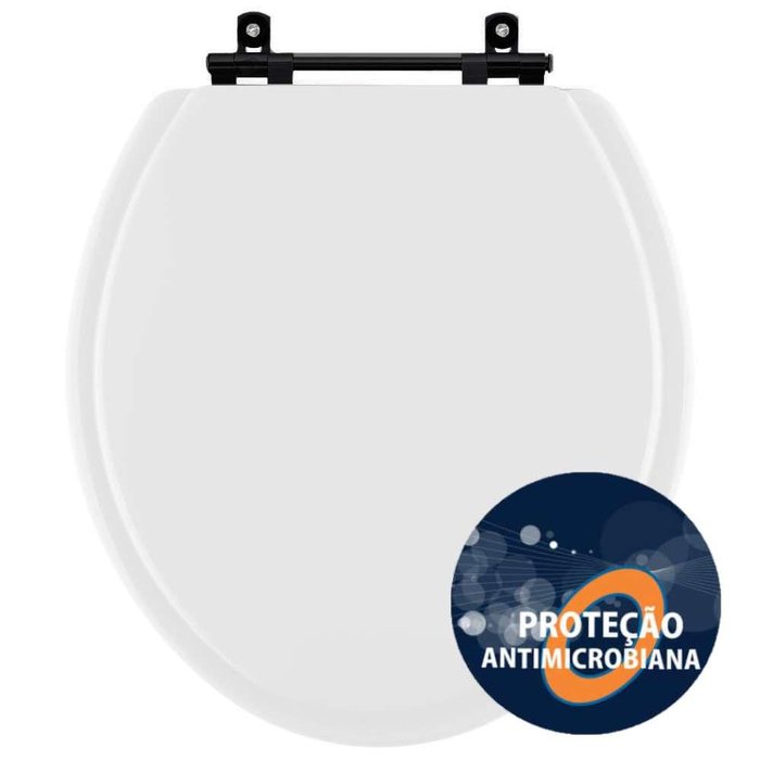 Assento Sanitario Antimicrobiano Convencional Oval Universal Branco com Ferragem Preta