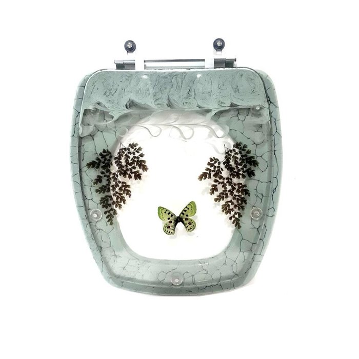 Assento Sanitário Thema Verde Água Decorada com Borboleta Verde e detalhes Marmorizado para Louça Incepa é a escolha perfeita para seu banheiro. O Assento Sanitário Poliéster é considerado o melhor tipo de assentos sanitários do mercado pelo seu acabamento impecável e excelente durabilidade. <br><br> Este assento de vaso sanitário é produzido em resina maciça de poliéster com detalhes marmorizado. O poliéster é uma resina semelhante ao acrílico, só que mais robusta / resistente. Por isso, é totalmente impermeável, pode ser lavado com água à vontade. Fácil de limpar. Não acumula sujeira. <br><br> Compatível com o vaso sanitário Incepa modelo Thema com ou sem caixa acoplada (é compatível com os dois tipos de vasos). <br><br> Produto completo, acompanha parafusos para instalação no vaso. Fácil de instalar, basta apenas uma chave de fenda e fica pronto em menos de um minuto. <br><br> Produto novo e completo. <br><br> O encaixe do assento sanitário no vaso é feito por uma ferragem metálica que não oxida e não enferruja. <br><br> Dicas: <br><br> Limpeza: recomenda-se a limpeza do assento sanitário poliéster com água e sabão neutro, não utilizar produtos abrasivos. <br><br> Material: maciço em resina de poliéster. Ferragens metálicas em alumínio anodizado (mesmo material utilizado em box de banheiro, não oxida e não enferruja). <br><br> Peso: 2,7kg <br><br> Instalação: sem desmontar o produto, posicione o assento sobre o vaso sanitário. Então encaixe os parafusos com a borracha preta dentro dos furos do vaso, e depois aperte com uma chave de fenda até ficar bem firme no vaso. Ao apertar com a chave de fenda, a porca irá subir e pressionar a borrachinha preta, que irá prender por pressão nos furos do vaso. <br><br> Importante: este anúncio inclui somente um assento sanitário conforme descrito acima. Todos os elementos decorativos das fotos não acompanham o produto. <br><br> Observação: O código 6LPF gravado na louça sanitária corresponde ao fluxo de água de uma descarga e não indica o modelo da mesma.