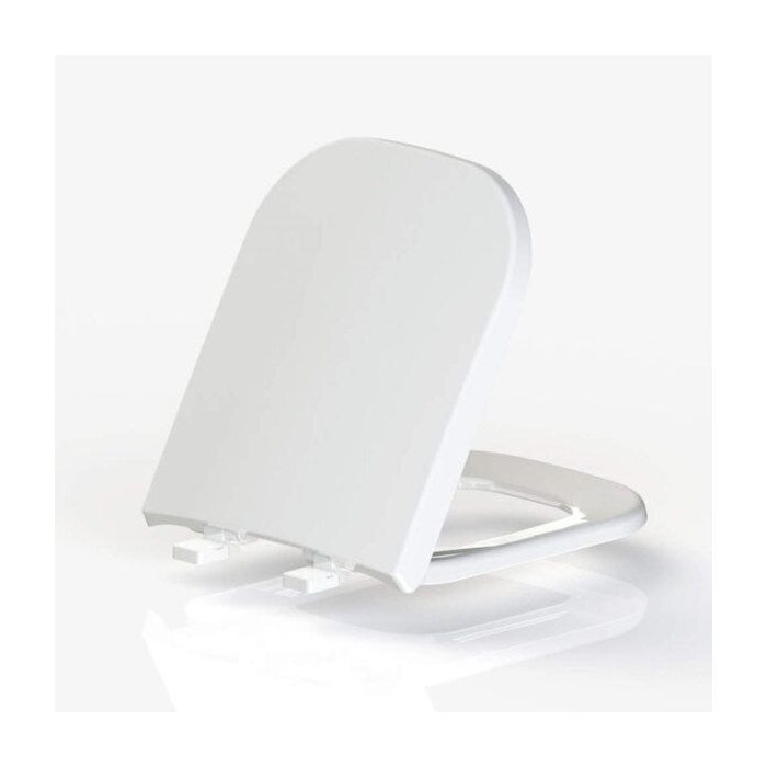 Assento com sistema de fechamento suave compatível com com as louças debba Roca, gap Roca, quadra Deca, polo Deca e unic Deca, em polipropileno, higiênico e de fácil limpeza, confortável, resistente, com tampa envolvente e superfície brilhante.