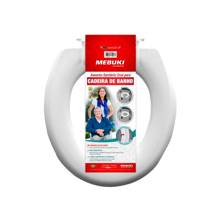 Assento Sanitário Oval para Cadeira de Banho Fechado Mekubi.Os assentos sanitários MEBUKI são confeccionados com matéria-prima nova, atóxica e de procedência, o que garante melhor acabamento e maior durabilidade. Superfície lisa impede o acúmulo de sujeira e germes. Duráveis, de fácil limpeza e manuseio higiênico. Instalação fácil, adaptável a todas as cadeiras de banho.Maior Firmeza e segurança.Composição: Polietileno ( PEAD) ; Polipropileno ( PP ) ; Poliamida (NYLON®)Dimensões: 39x44cm x 3 cm de altura.