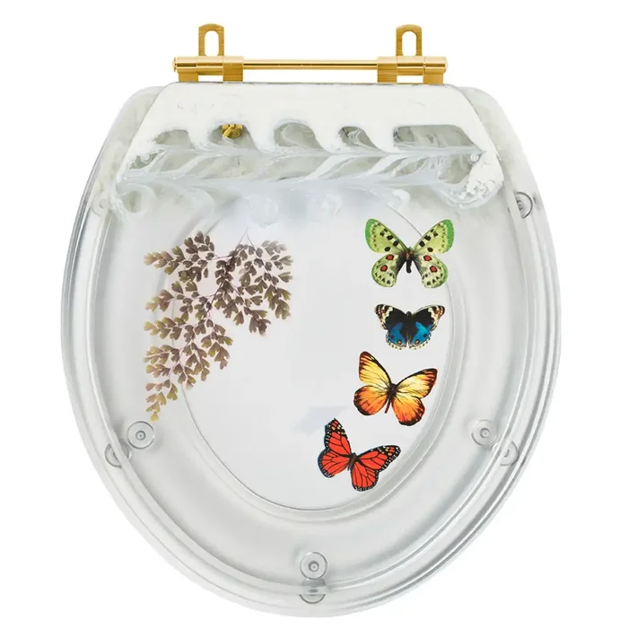 Assento Sanitário Poliéster Convencional Bege Assento Cristal Decorado 4 Borboletas para vaso Todas as marcas Com Ferragem Dourada é a escolha perfeita para seu banheiro trazendo beleza e praticidade. Esta Tampa de Vaso é fabricada 100% em Resina Virgem de Poliéster. É impermeável, ultra resistente, tem acabamento brilhante e ferragem dourada que não enferruja. Esta Tampa de Vaso pode ser usada em bacia sanitária com ou sem caixa acoplada. Instalação rápida e fácil, acompanha os parafusos de fixação e basta apenas uma chave de fenda para instalar no vaso. Entrega garantida e rastreada com embalagem dupla reforçada. Cor: Bege Assento Cristal Decorado 4 Borboletas. Distância entre meio dos furos da louça: 15cm. Acabamento: brilhante. Dicas: <br><br>Itens inclusos: assento e tampa em resina de poliéster, ferragem completa para instalação e embalagem dupla reforçada. <br><br>Limpeza: recomenda-se a limpeza com água e sabão neutro e não utilizar produtos abrasivos ou químicos. <br><br>Instalação: Não é necessário desmontar nenhuma peça do produto. Posicionar e encaixar na louça sanitária os dois parafusos com as borrachas pretas dentro dos furos do vaso. Aperte com a chave de fenda no sentido horário até ficar firme. <br><br>Importante: este anúncio inclui somente o produto conforme descrição acima. Todos os elementos decorativos das fotos não estão inclusos. <br><br>Observação: O código 6LPF gravado na louça sanitária corresponde ao fluxo de água em litros de uma descarga e não indica o modelo da mesma. <br><br>