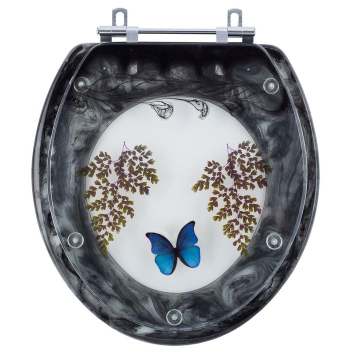 Assento Sanitário Tampa de Vaso Convencional Oval Preto Decorado com Borboleta é a escolha perfeita para seu banheiro. O Assento Sanitário Poliéster é considerado o melhor tipo de assentos sanitários do mercado pelo seu acabamento impecável e excelente durabilidade.