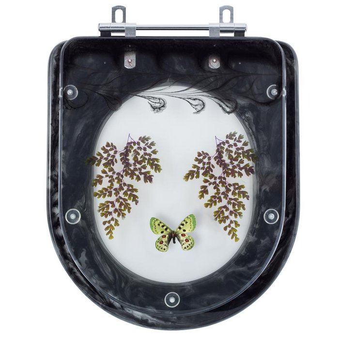 Assento Sanitário Tampa de Vaso Vogue Plus Preto Decorado com Borboleta - Borboleta Verde Preto