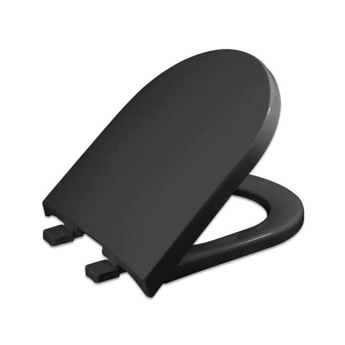 Assento com sistema de fechamento suave (soft close) compatível com com as louças carrara (deca), link (deca) e vesuvio (icasa), em resina termofixo, material antimicrobiano, não amarela e não risca, higiênico, confortável, com tampa envolvente e superfície brilhante.