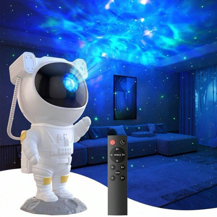 1 projetor de galáxia e estrelas em formato de astronauta.