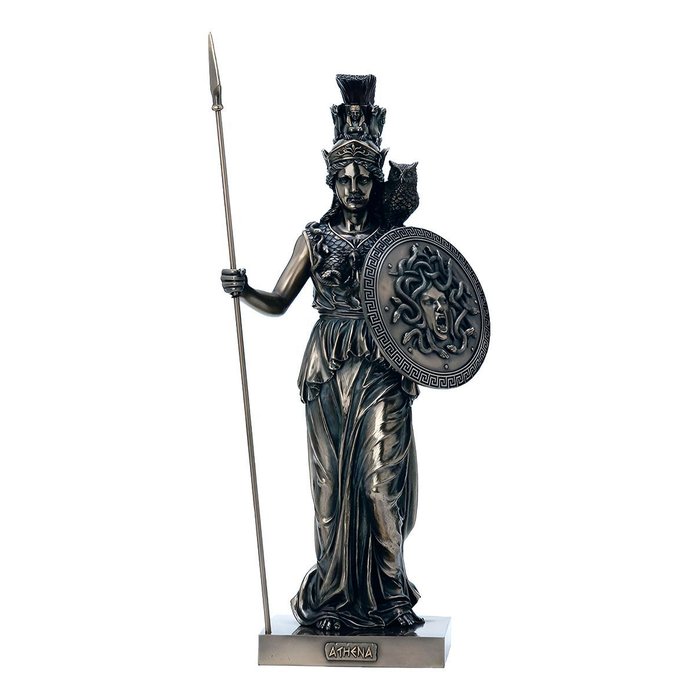 Atena foi uma deusa da sabedoria, da guerra estratégica, das artes, da justiça e das habilidades na mitologia grega, filha de Zeus que nasceu pronta e armada da cabeça do pai. Considerada a deusa virgem, ela também foi a protetora da cidade de Atenas, onde deu origem ao seu nome ao oferecer a oliveira como presente.