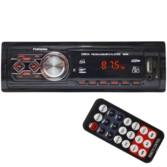 Auto Rádio Som Mp3 Player Automotivo Toca Som Carro Fm Sd Usb Aux Controle First Option 8860