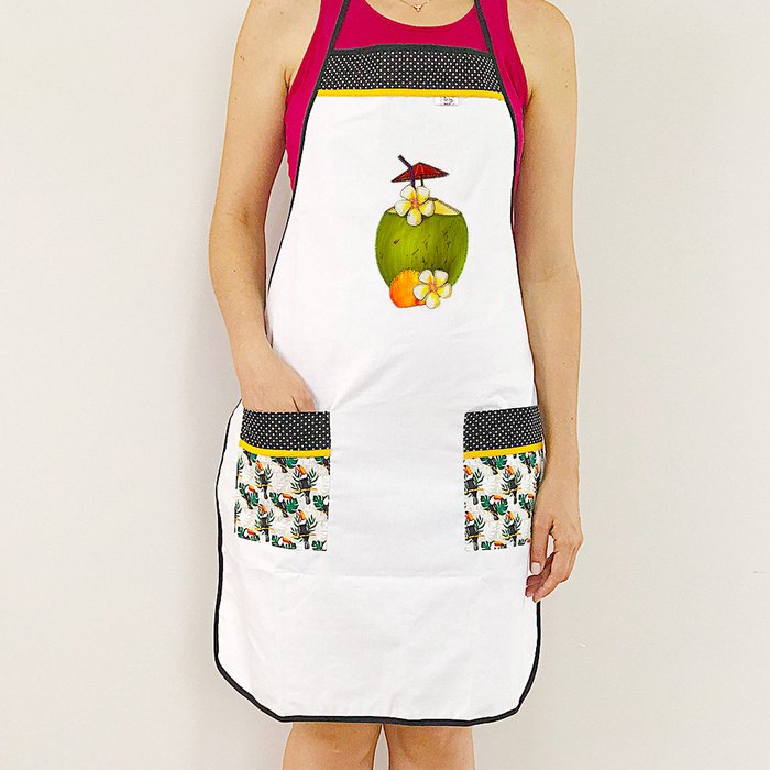 Avental bordado patch cozinha revestido com plástico - Coco Verde