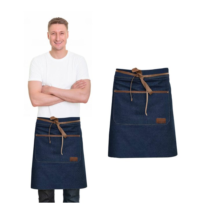 Avental de cintura jeans e detalhes em couro. O avental profissional da CASACHA possui ajuste na cintura atraves das alças em couro para amarrar e bolso frontal. Ideal para chef de cozinha, barista, jardinagem, pintura e outros. Este avental atende bem aos clientes mais exigentes priorizando conforto, qualidade e estilo. Os detalhes em couro sao perfeitos para gravar seu nome ou logomarca. A personalizacao dos aventais deve ser feito por empresa terceirizada, enviamos conforme foto e descricao.
