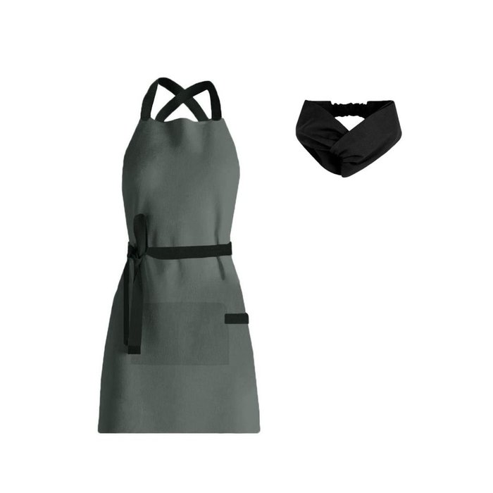 Avental e faixa de cabelo. Avental corpo inteiro com alças cruzadas nas costas e bolso frontal. Este modelo de avental com alças cruzadas é ideal para aliviar o pescoço durante o uso prolongado. Possui detalhe decorativo e funcional ao lado do bolso, perfeito para pendurar pano de prato. Feito para chef de cozinha, barista, jardinagem, pintura e outros. Este avental atende bem aos clientes mais exigentes priorizando conforto, qualidade e estilo. Produzido em tecido 100% algodao, facil de lavar e indicado para uso na maquina de lavar roupa.