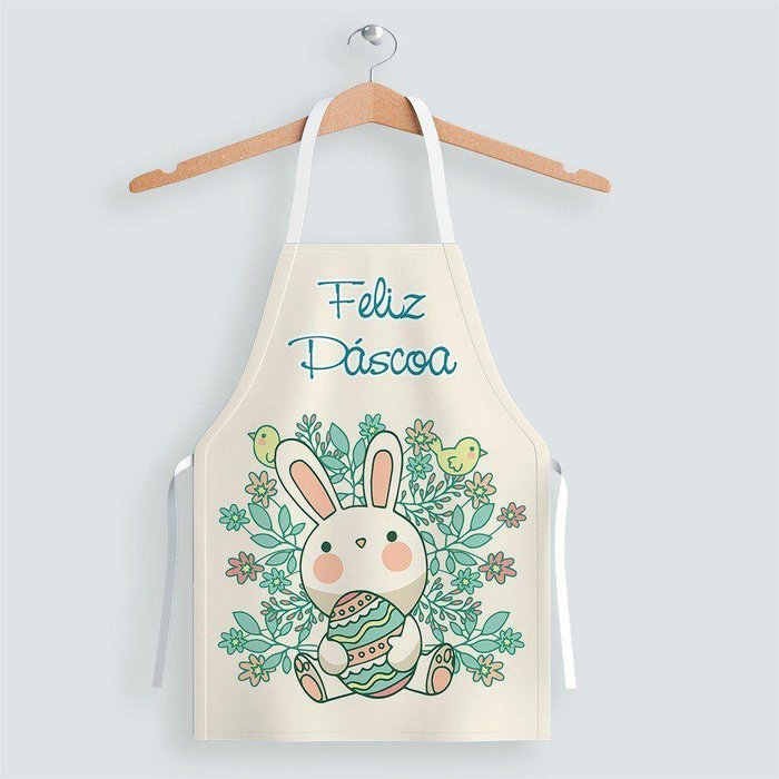 Avental Oxford Com Regulador De Altura Bege Feliz Páscoa