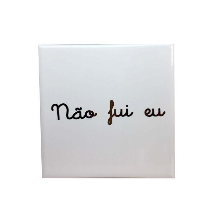 Azulejo Quadrado Branco com Escrito Dourado "Não Fui Eu"