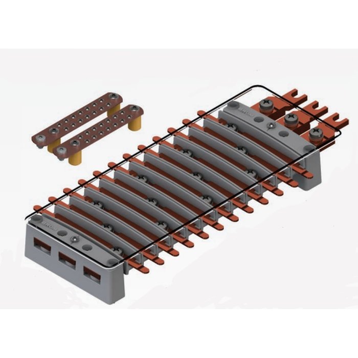 Solução completa, com barramentos Neutro e Terra e trilhos DIN;
