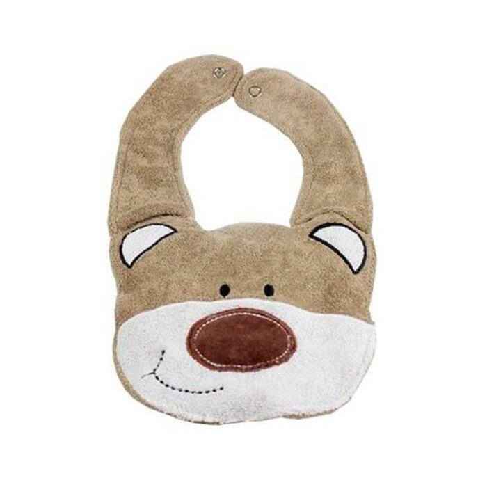 Babador atoalhado da marca Zip super macio e reforçado com a estampa de um lindo ursinho na cor caramelo com detalhes em marrom e branco.