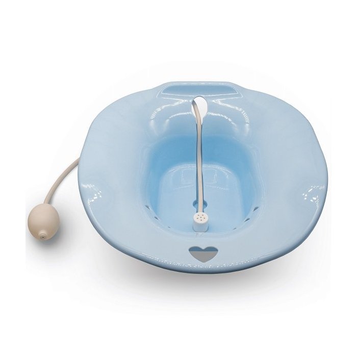 Com uma bomba manual capaz de fazer um jato d?água e ajudar na sua higiene.