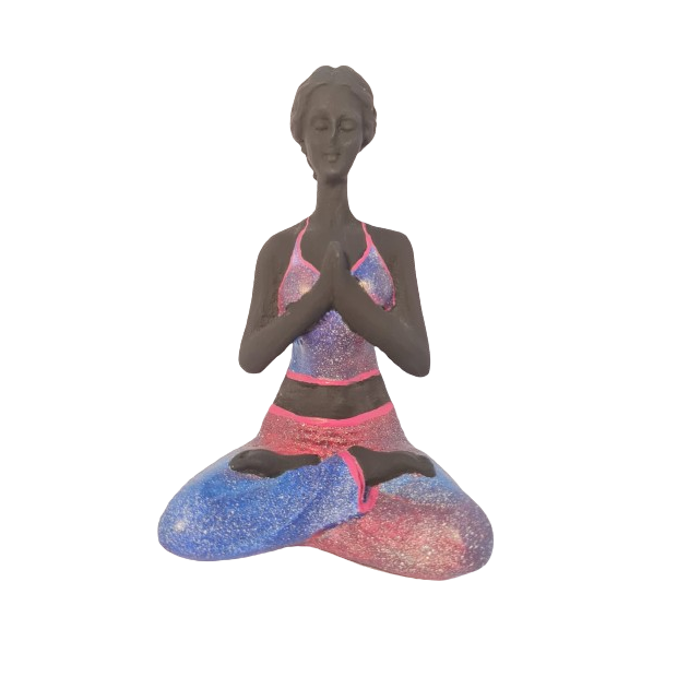 Bailarina Yoga Yogui Pernas Cruzadas Orando Degradê Azul Roxo e Rosa - Peça em Gesso Azul Roxo e Rosa