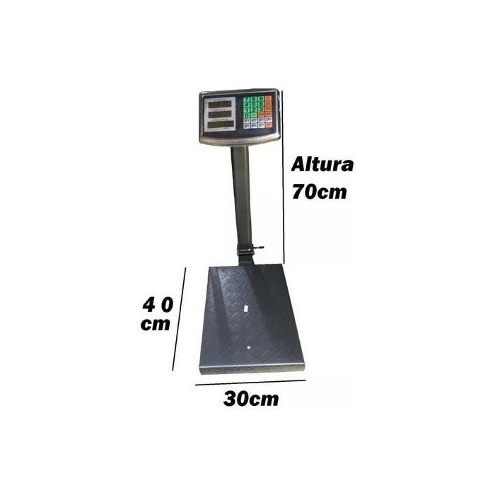 Balança digital 150 kg com plataforma Bi Volt com bateriaPés niveladoresInício de pesagem a partir de 50 grPesagem máxima de até 150 kgPlataforma e coluna em aço galvanizadoPainel Digital com função Tara, Memória, Preço e Ajuste do BrilhoAltura da Coluna70 cmDimensões da Plataforma30 cm largura40 cm comprimento9 cm alturaAcompanha carregador para a bateria internaBateria Interna de Longa duração