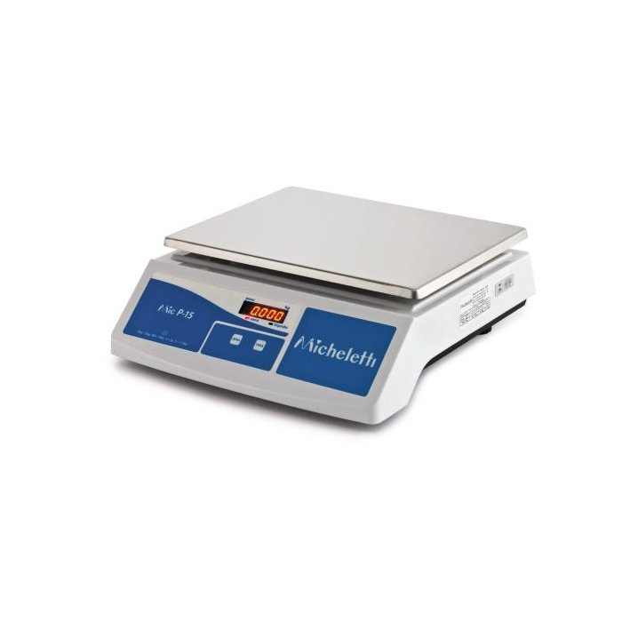 A balança pesadora MIC-P15 da Micheletti possui gabinete em ABS injetado, superfície de pesagem em aço inox, pés reguláveis, teclas de zero e tara, display LED de alto brilho que garante perfeita visualização do resultado da pesagem, visor duplo (cliente e operador), capa plástica protetora e tara subtrativa até 5kg.
