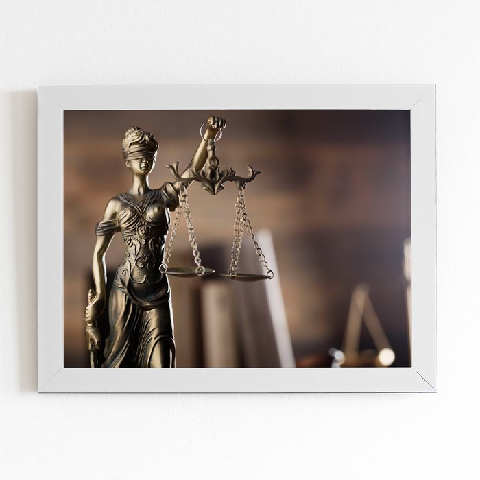 Balança Justiça Têmis Direito Quadro Moldura Branca 60x40cm