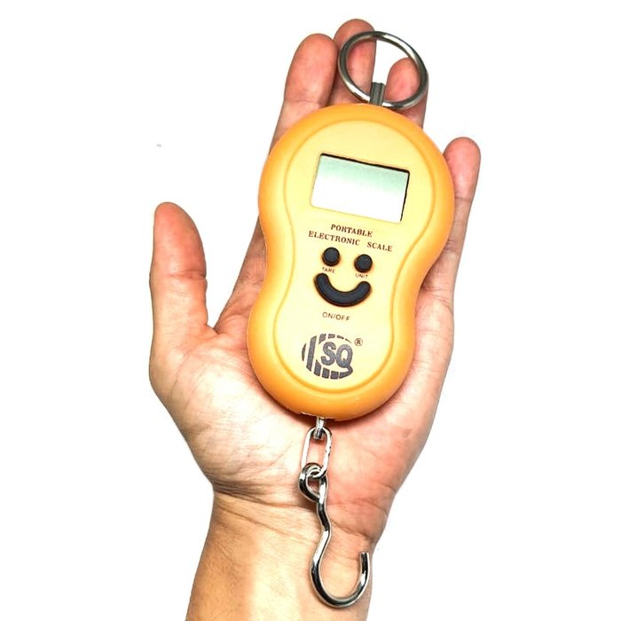 Balança Digital de Gancho Portátil. *** Descrição: 01 Balança Digital Fonte de alimentação: 2 Pilhas AAA (inclusas) Suporte para o gancho Visor digital medindo aproximadamente: 3,2 cm x 2 cm; *** Especificações: * Possui gancho * Display de 4 dígitos * Função Tara * Capacidade máxima de 50kg * Capacidade mínima de 0,2kg * Precisão: 20 gramas * 2 escalas de medidas: Kg ( Kilogramas / 1 Kilograma = 1,000,00g ) Lb ( Libras / 1 Libra = 453,59237g ) **** FOTO REAL DO PRODUTO.