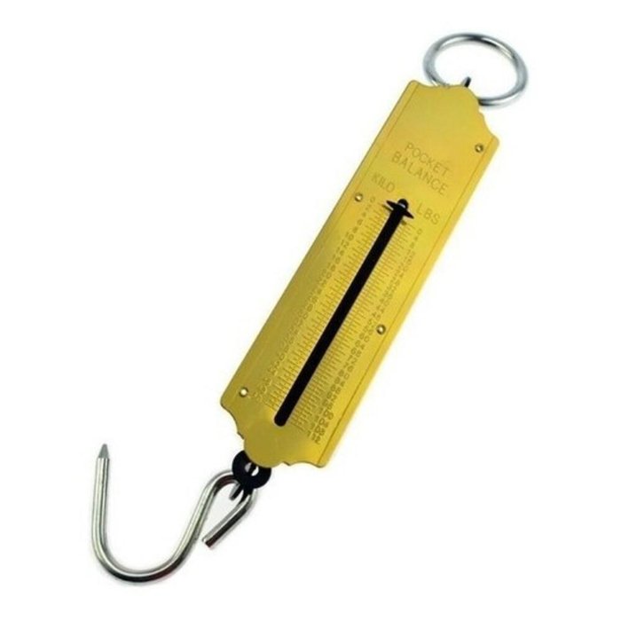 BALANCA SUSPENSA 100KG DE MAO COM GANCHO PEIXEIRO PESCA CARNES PORTATIL MALA ALTA PRECISAO MULTIUSO DOURADO