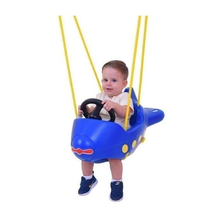 Que tal uma voltinha de avião? projetado para dar total segurança à criança, acompanham cordas em plástico super resistentes e 02 ganchos para fixação, além de cinto de segurança. Além do tradicional balanço a criança conta ainda com direção e chave creck creck para incrementar a brincadeira. Ajuda a criança a desenvolver a coordenação motora e a concentração.