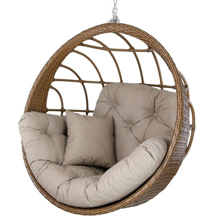 Balanço Ninho Suspenso Hungria Em Alumínio E Fibra Sintética - Teto, Jardim, área Sépia E Linhão Bege